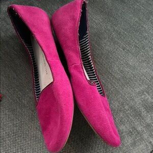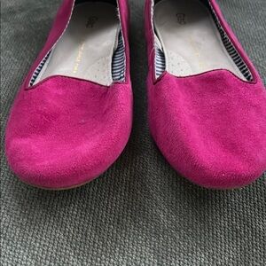 Experience the perfect blend of comfort and style with GAP's pink real suede loafers. These flats feature a classic design with a rounded toe and a plush suede finish, making them an ideal choice for both casual and semi-formal occasions. The vibrant pink color adds a bold touch to any outfit, ensuring you stand out wherever you go. Never worn.