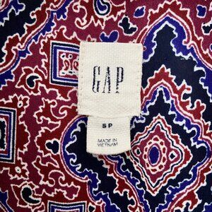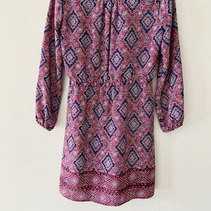 Gap pink patterned knee-length dress. Long sleeves. Side pockets. Elastic waist with tie. Button front with pleat detailing. Length from shoulder to hem 90.0 cm. Size S. Good used condition.