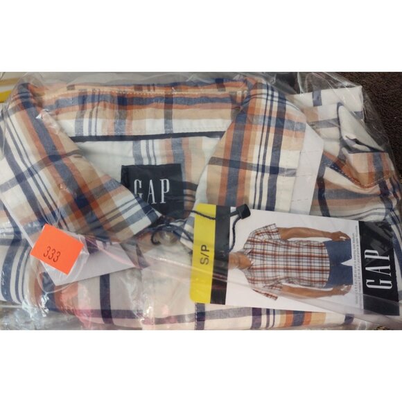 GAP Plaid Shirt NWT Men’s Small Orange Blue Short Sleeve Casual Top