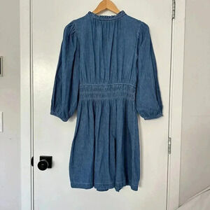 GAP Puff Sleeve Denim Dress with Washwell Smocked Waist Boho Prairie Size Small