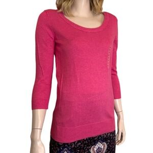 GAP Pullover Sweater Soft Cotton Rayon Blend Rose Fuchsia Bracelet Length Sleeve