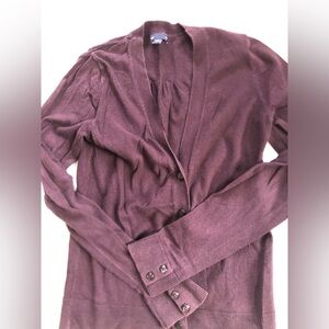 Stylish purple cardigan with button-up front. Perfect for layering. Wear it to the office during the day and to dinner at your favourite restaurant!