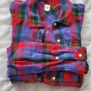 GAP "Purple Plaid" Super soft Cottagecore Long sleeve top- M