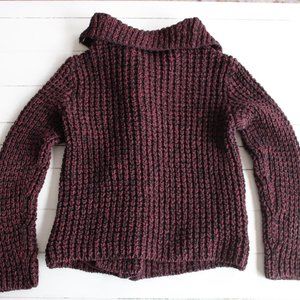 From GAP, a knit motorcycle style sweater with front zipper closure and foldover collar. Rich red and black marled colour way. Thick / chunky knit made from 100% Cotton.