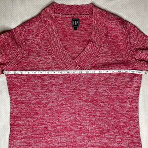 Cozy meets chic in this soft marled red V-neck sweater from GAP. Featuring a wide ribbed neckline, lightly ballooned sleeves, and a relaxed yet flattering fit, this versatile piece adds effortless style to any outfit.