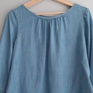 GAP Relaxed Fit Ruffle Blouse Top Chambray Blue Sz XS