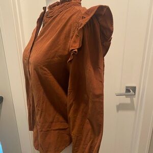 GAP Rust Ruffle-Shoulder Button-Down Shirt
