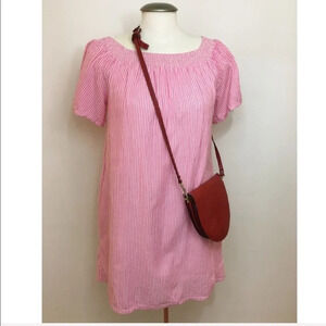 Super cute for summer. Can be worn belted or loose. Has two pockets, and is in excellent condition, only worn twice a few summers ago. 100% cotton and lined so not see through. VGUC.