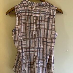 GAP Silk like sleeveless blouse. Pink grey tan print.
