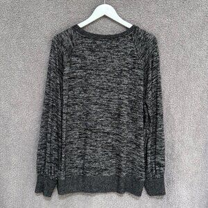 The perfect blend of airy and plush. Versatile and made for layering. Supersoft marled jersey knit. Long raglan blouson sleeves, banded ribbed-knit cuffs. Ribbed-knit trim at wide V-neck. Banded ribbed hem. The overall feel is like a light sweater, I'd say. The close-up photos aren't a good representation of the colour- it's blacker-looking overall, like the stock photo and more distant pics. Super cozy and soft!