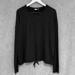 Supersoft, marled jersey knit. Heavier than a tshirt, but lighter than a sweater- perfect for spring and fall! Versatile and made for layering. Dropped shoulders. Long sleeves with banded ribbed-knit cuffs. Rib-knit trim at crewneck. Drawcord ties at hem. Loose, boxy fit.