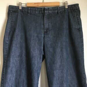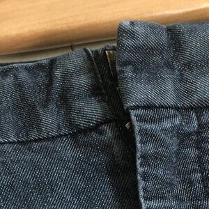 Very good preowned condition, washed out/muted blue denim trouser pants by GAP. Perfect for warmer months and all year classy casual wear. The Goldilocks zone between casual and dressy. Looks like a shorter leg to me, like an ankle fit, but will depend on your own personal measurements.