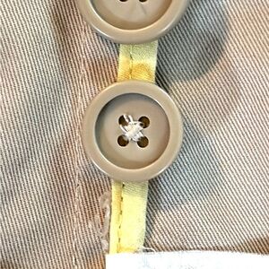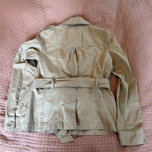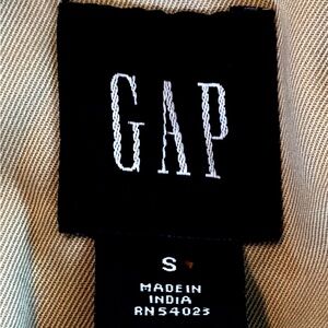 This GAP utility jacket in a classic tan color is crafted from durable cotton canvas, perfect for outdoor adventures. Its utilitarian design ensures both style and functionality, making it a versatile addition to any wardrobe.