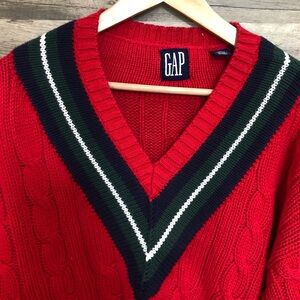 GAP Vintage Preppy Oversize Red Cotton V-Neck Men's Sweater Small Medium