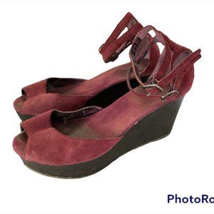 GAP Wedge Peep-toe Suede Sandals - Wine