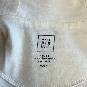Charming white hooded baby jacket with GAP logo. Features adorable ear details on the hood.