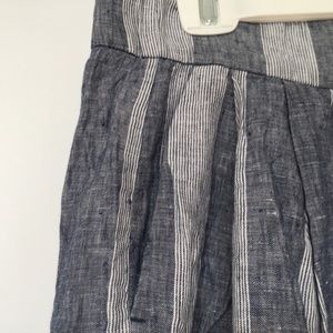 GAP Wide Leg Linen Pants Crop Side Pockets Front Pleats Sz 14 Blue White Striped