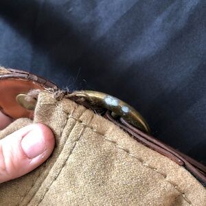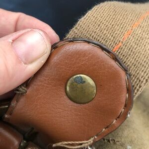 Good preloved condition- original owner. Some wear to the hardware as shown, two pen marks in the bottom on the inside, a bit of corrosion on the one loop (would likely come off with a bit of steel wool), some loose threads. Note: threads have always been like this, it just has gotten a bit more stringy over time.