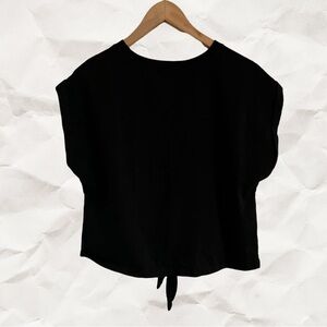 GAP Women’s Black Pleated Sleeves Crewneck Tied Cropped Top Medium