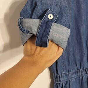 GAP Women's Blue 100% Cotton Drawstring Waist Roll Tab Long Adjustable Sleeves Romper Size XS