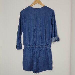 GAP Women's Blue 100% Cotton Drawstring Waist Roll Tab Long Sleeve Romper Sz XS