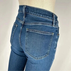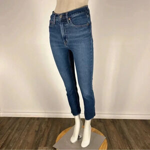 Classic blue jeans with a high-rise fit. Features a button closure and five-pocket design. Perfect for casual wear. See photos for measurement