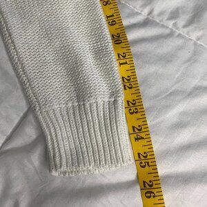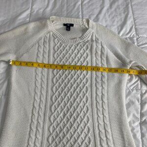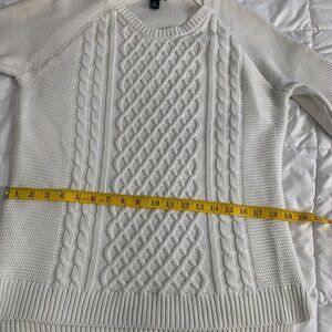 GAP Women’s Ivory Cable Knit Sweater – Size L, Crew Neck, High–Low Hem
