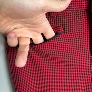 GAP Women's Signature Skinny Ankle Pants Micro Check Red/Black Size 00 Pockets
