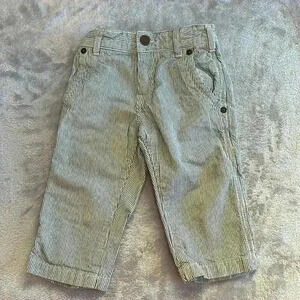 Features: Includes - 1 long sleeve H&M organic cotton onesie and 1 pair of pull on GAP cargo style striped pants with front/rear pockets, belt loops, and elastic waistband