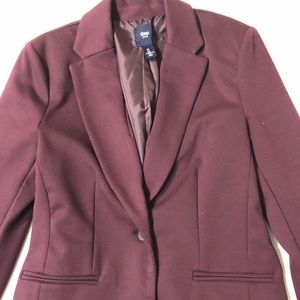 Boyfriend blazer in deep maroon colour from The Gap. Size XS but has a generous fit. Excellent condition.