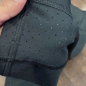 Slightly cropped, excellent condition. high quality leggings i just never wear them. but soo comfortable and feel great and look good. Size large leggings.