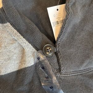 Stay stylish and comfortable with this black and gray striped sweater. Perfect for any casual occasion.