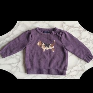 GAP kids purple sweater with beagle and bow detail SIZE 12-18 months