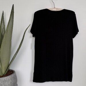 GAP luxe long modal fine ribbed short sleeve crewneck t-shirt black XL