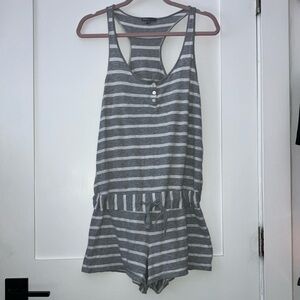 GAP medium women’s romper - cotton gray/ White nautical Striped Jumpsuit