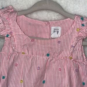 Very pretty pink striped romper from baby gap. Adorable tiny pom pom detail. Excellent condition size 12-18 months. Check my closet for other Gap baby rompers to bundle and save.