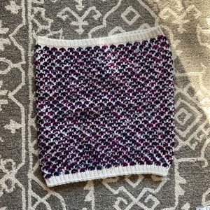 Cozy cowl neck circular scarf from the Gap. Acrylic scarf in purples pinks and white. See pictures for approximate size (laying flat). Will be steamed before shipping.
