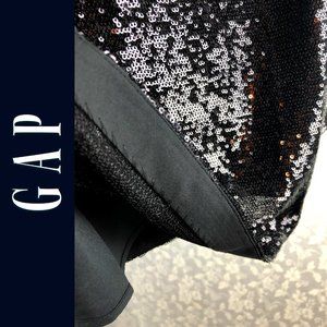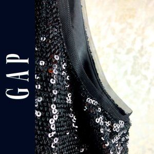GAP slinky sequins black sheer edged classy tank top flared slightly at waist for nice movement.