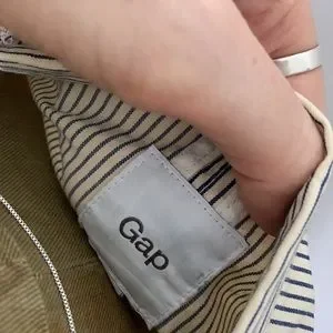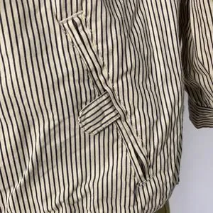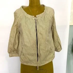 Ready for spring in this Gap striped jacket. 💯% cotton. Lightweight. 3/4 sleeves. 2 pockets. It’s possible to gather the neck and pull it tighter. Great condition. Says XS but more like small. White with Navy stripes.