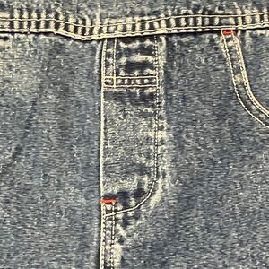 Good used condition, good quality thick jean material. Front pockets and diaper change access with clips at bottom.