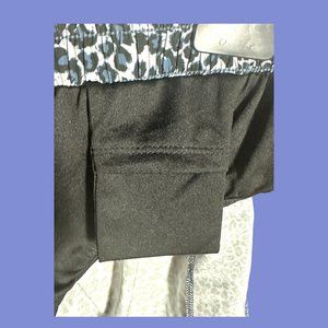 Features: Animal print, interior panty, small side slits, elastic waist, interior hidden pocket, super soft and silky feel, color combo black/grey. Measures when laid flat: Waist: 14" Waist seam to hem: 12" Rise: 10.75" Thanks for looking!