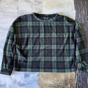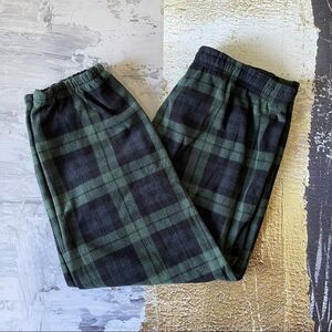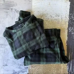 Soft, cozy and comfy pajama set, perfect for colder nights. Features a soft microfleece knit, long sleeves, crewneck, elasticized waist at pants with drawstring, banded cuffs and flannel all over. NWOT only tried on and washed.