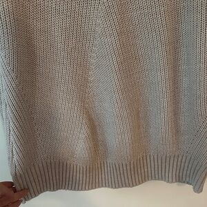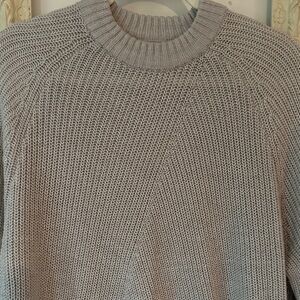 This gorgeous crew neck tunic-length sweater features an asymmetrical knit pattern in a super comfy oversized shape. Try it out in a larger size as a dress!