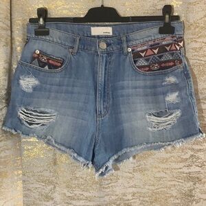 GARAGE Light Blue Wash High Waisted Distressed Festival Short Jeans Size 11