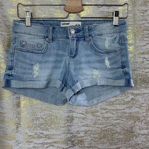 GARAGE Light Blue Wash Low Rise Distressed Denim Flirty Shorts Size 3