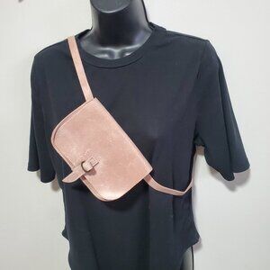 GARUGLIERI Italian Leather Belt Bag Waist Fanny Pack Purse Pastel Pink 7" x 4.5"