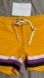 They are brand new, are nonbinary flag themed and made by a trans-owned company. Tried on once with clothing underneath. Selling because it’s too loose on my waist, but too tight on my thighs and bum. If you are my measurements (below) or larger, you will not be able to sit down in these comfortably. Thread imperfections throughout the shorts; some examples in newer pics.