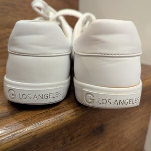 Guess GBG Los Angeles White Sneakers with Gold Logo & Rhinestone Embellishment Sz 9