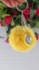 Selling a Gemini Faux Fur Yellow Pom Pom Keychain with a Hamsa Hand.