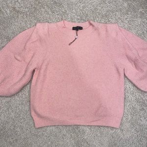 Soft and fuzzy, warm and cozy, our mohair and Merino wool-blended crew neck sweater has it all. Includes textured yarn, exaggerated balloon sleeves and ribbed cuffs for one-of-a-kind styling.
